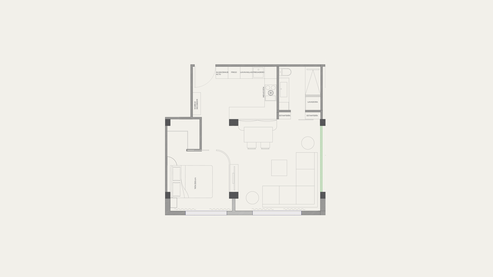 Este proyecto consta de una vivienda enfocada para alquilar, ubicado en pleno corazón de Valencia, se concibe como un espacio luminoso, funcional y acogedor, pensado para adaptarse a distintos perfiles de usuario sin perder identidad. La intervención busca un equilibrio entre practicidad y calidez, creando un hogar que se sienta cómodo desde el primer día.